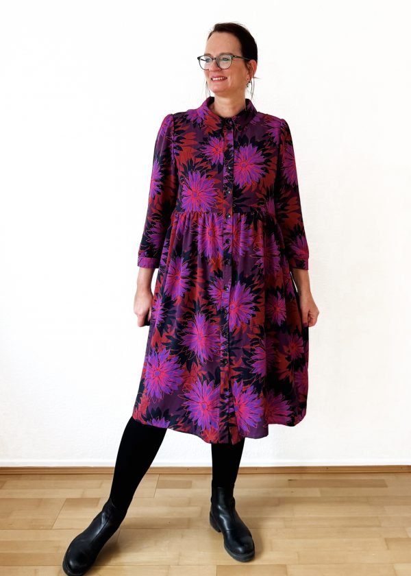 Kleid Melli ist auf nicht dehnbare Stoffe ausgelegt. Leicht fallende Webware wie Viskose, Viskose Crepe, Baumwollsatin, etc. eignen sich perfekt für Melli. Aber auch aus einem satten Baumwollstoff, Musselin oder einem feinen Cord- oder Jeansstoff lassen sich tolle Ergebnisse erzielen.